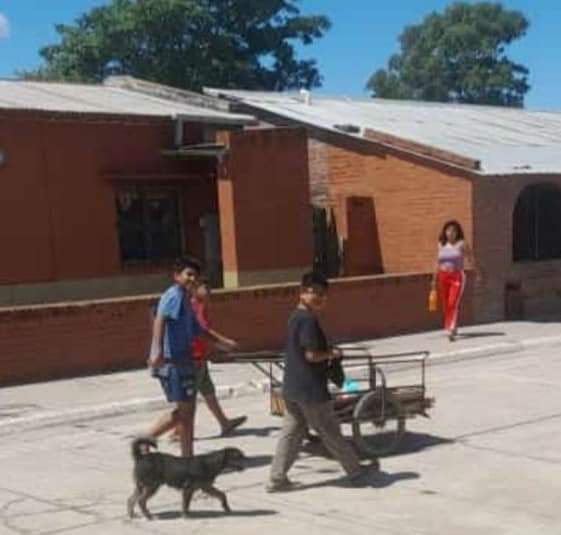 Esta acción digna de ser destacada, ocurre desde el día que cortaron el agua en la zona de La Mendieta. Se trata de tres niños que salieron con un carro con botellas y tachos para recolectar agua de una acequia, que luego llevan y dejan en los domicilios de las personas adultas mayores que no pueden salir a juntar el líquido elemento.