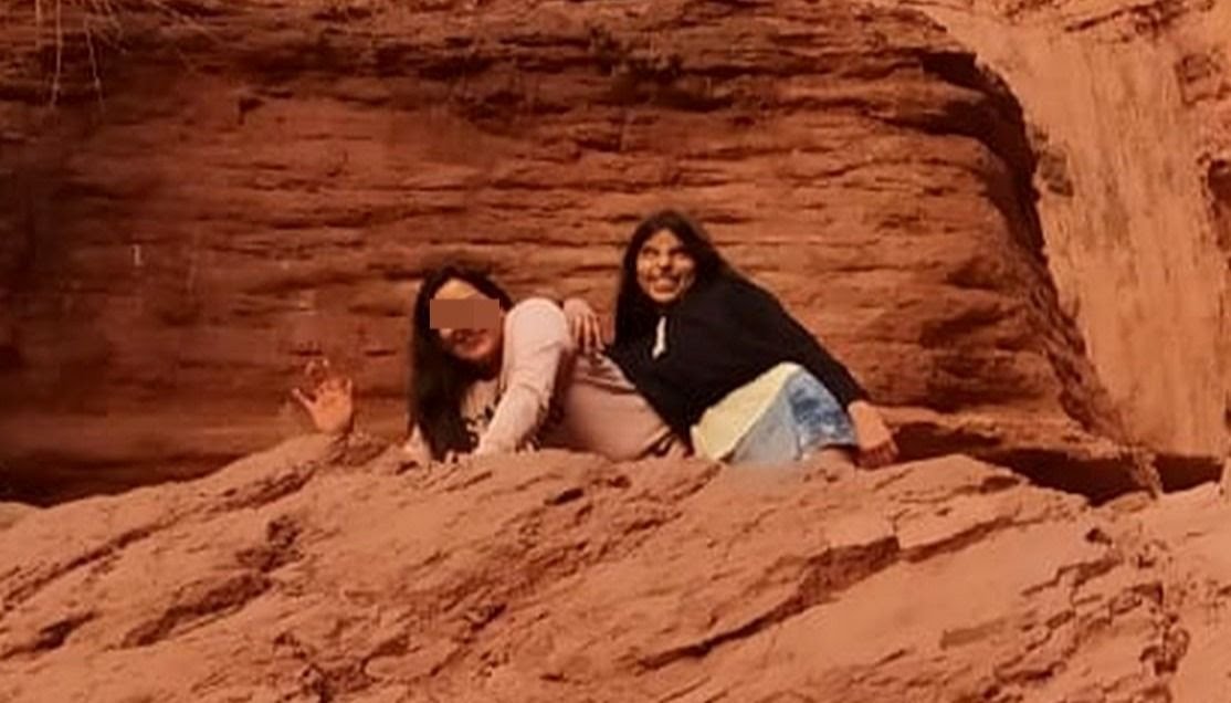 Un rostro diabólico quedó registrado, cuando una mujer con su sobrina se fotografiaron en la Garganta del Diablo, durante el feriado del Milagro.
