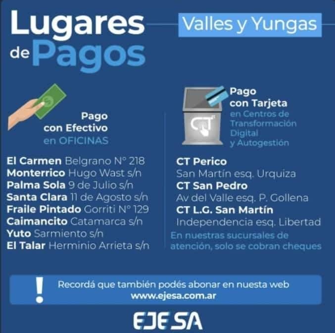 El día de hoy se dió a conocer que desde el próximo lunes 19, la empresa proveedora del servicio eléctrico de nuestra provincia no recibirá efectivo en las ciudades de Ledesma, San Pedro y Perico.