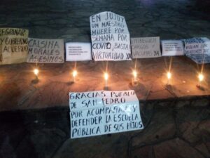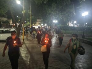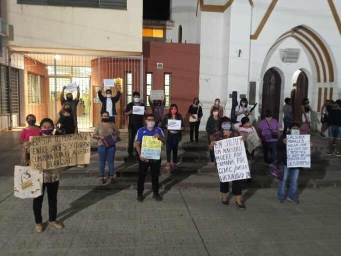 Hoy en horas de la noche, docentes autoconvocados de San Pedro de Jujuy llevaron a cabo una marcha con antorchas, pidiendo por un programa de vacunación contra el covid-19.