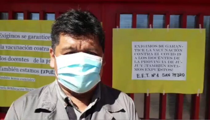 El personal educativo de la Escuela de Educación Técnica N° 1 Coronel Manuel Álvarez Prado de San Pedro de Jujuy, lleva a cabo una jornada de reclamo por la vacunación contra el covid 19 a los docentes de la la provincia.