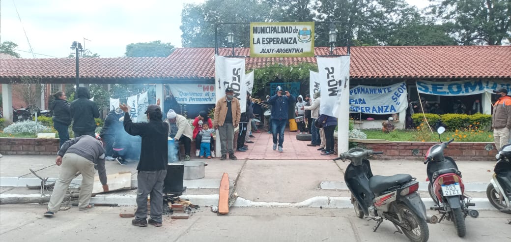 Adhiriendo a una jornada de lucha a nivel provincial, trabajadores de la municipalidad de La Esperanza nucleados en el SEOM llevan adelante un reclamo frente a la misma.