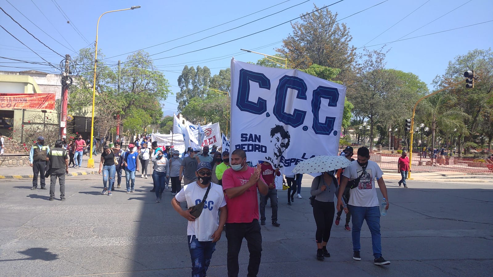Miembros de la organización «Los Cayetanos» marcharon por las calles de San Pedro en contra de las políticas del gobierno de Jujuy.