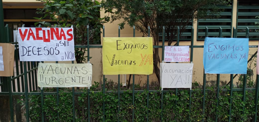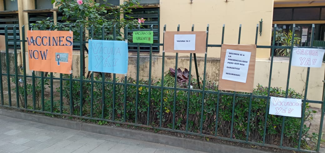 En la mañana de hoy, se llevó a cabo en la escuela Normal Superior General José de San Martín de nuestra ciudad, una protesta de docentes que exigen see vacunados contra el covid-19.