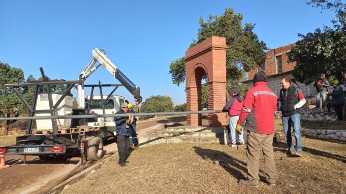 A dos días del acto protocolar por el Día de la Independencia, personal de la municipalidad de San Pedro de Jujuy trabaja en la plazoleta alusiva del barrio 9 de Julio, instalando un nuevo mástil de la bandera, ya que el anterior fue sustraído por manos anónimas en los últimos días.
