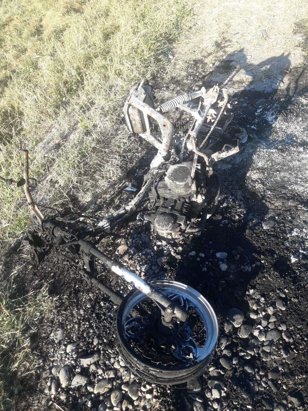 Al llegar al lugar, los efectivos encontraron un motovehículo marca Gillera 125 c.c de color negro, prácticamente consumido por las llamas.