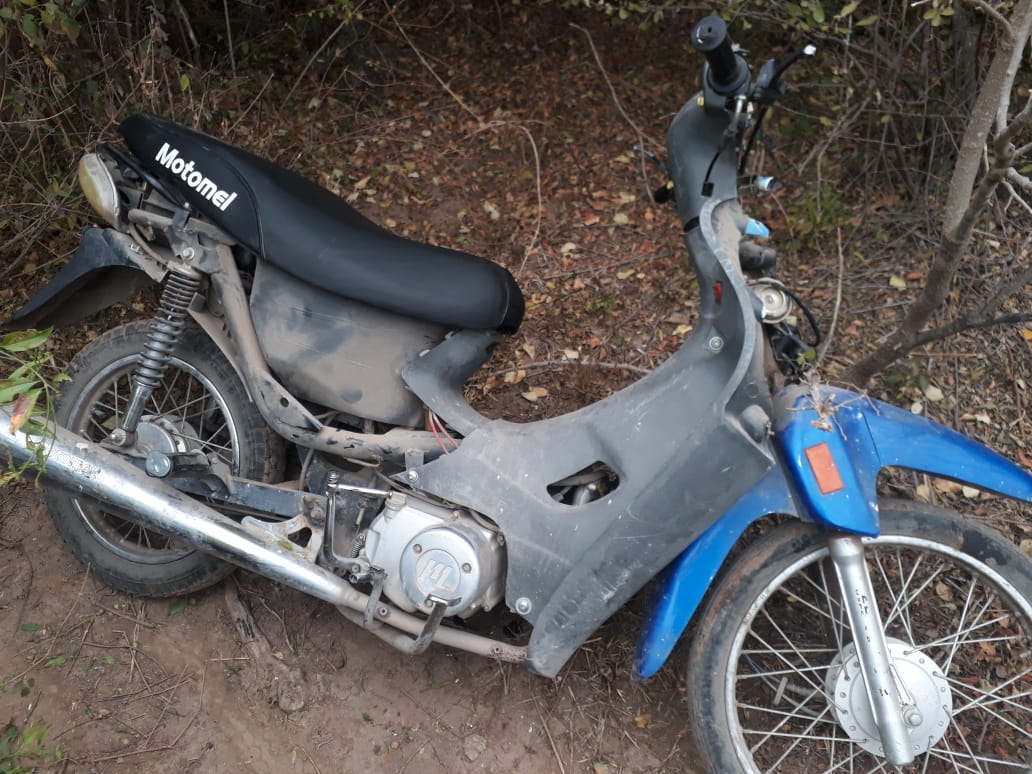 En el recorrido, los uniformados encontraron entre las malezas de una cancha de fútbol, un motovehículo de 110 c.c, de color azul y con el faltante de varias piezas, que los sospechosos habían dejado abandonado y que que también sería producto de un ilícito, por lo que fue trasladado a la brigada de investigaciones de la UR2, desde donde se solicita a quienes hayan denunciado el robo de una moto de similares características, se apersonen para acreditar la propiedad.