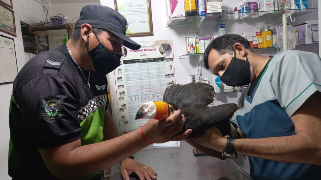 Este miércoles a hs. 19:20,vecinos del barrio Bajo Moralito alertaron a las autoridades policiales sobre una situación donde un vecino de ese sector se había apropiado de un tucán herido.