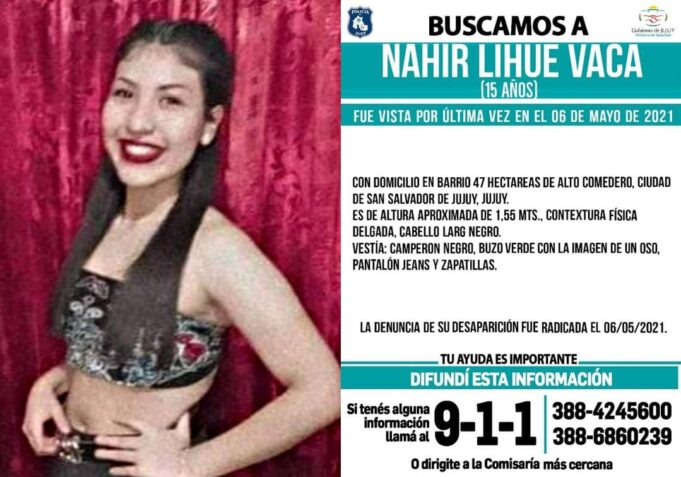 Se busca a Nahir Lihue Vaca de 15 años. Con domicilio en el barrio 47 Hectáreas de Alto Comedero, Ciudad de San Salvador de Jujuy.