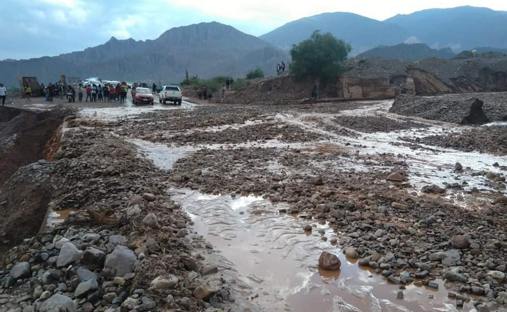 Tras el fuerte temporal que afectó este domingo por la tarde a gran parte de las localidades de la Quebrada de Humahuaca, algunos tramos de la Ruta Nacional 9 estuvieron intransitables por al menos dos horas.