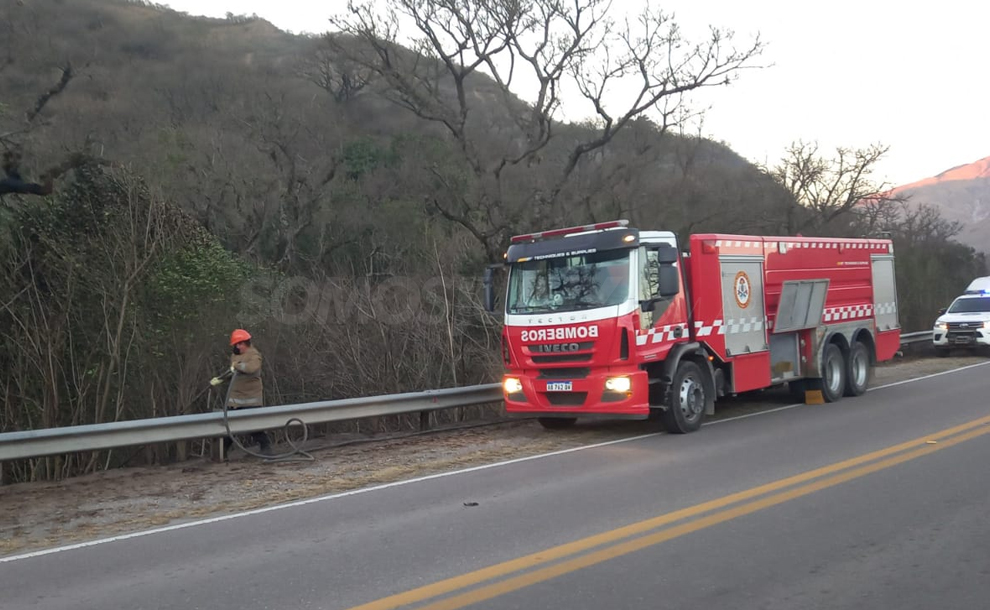El llamado de un vecino alertó sobre el incendio que se produjo sobre la ladera de los cerros del margen izquierdo de la Ruta 9, en sentido Sur – Norte, entre el puente del río León y el pueblo.