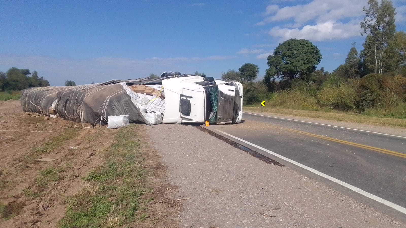 El hecho se produjo este miércoles a hs. 11:30 aproximadamente, en un tramo de ruta nacional 34 conocido como Monte Alto, en cercanías a la localidad de Arrayanal, donde un camión de gran porte volcó por causas que se tratan de establecer.