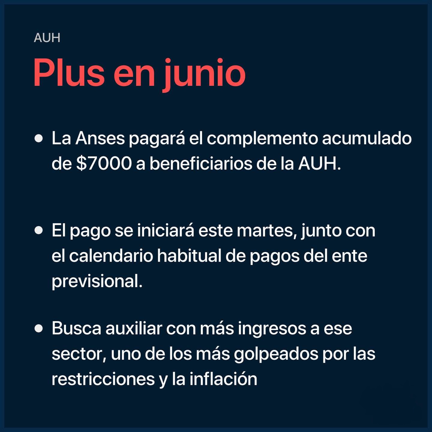 En tanto, para quienes no hayan completado hasta fines de abril la declaración jurada 2020, el pago del complemento de la AUH se iniciará a partir del mes próximo.
